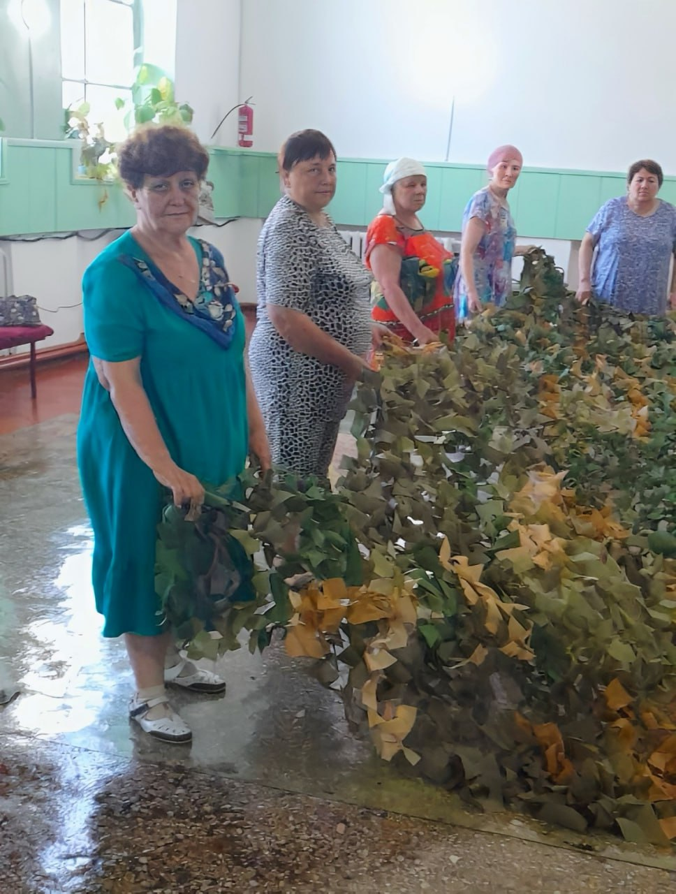 Маскировочная сеть для солдата, который находится на позиции, не менее важна, чем бронежилет или каска. Она помогает бойцам укрыться от врага и спрятать технику. Поэтому активистки ТОС «Победа» и неравнодушные жительницы села плетут сети больших размеров.